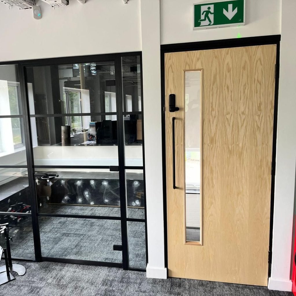 8 Oak Veneer FD30 Fire Doors – These stunning fire doors not only enhance safety but also add a touch of sophistication, complete with stylish black ironmongery.